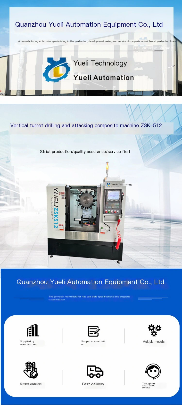 Yueli는 고속 강성 테이핑, 높은 정밀도 및 고효율로 터릿 드릴링 및 테이핑 센터 ZSK580을 생산합니다.